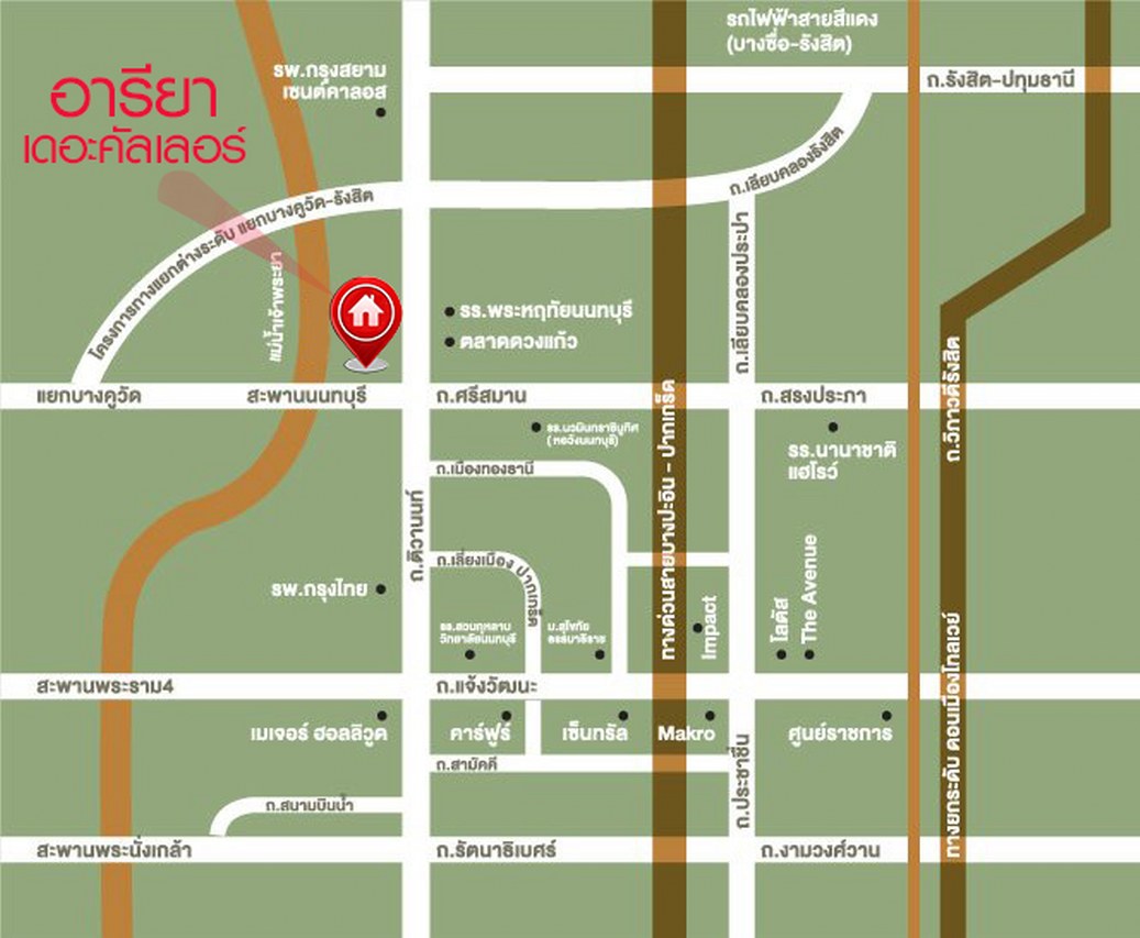 - ใกล้ห้างสรรพสินค้าเซ็นทรัลแจ้งวัฒนะ,เมืองทองธานี , โรบินสันศรีสมาน ,เมเจอร์ ฮอลลีวูด ,เมืองทองธานี